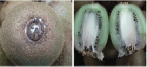 علائم خسارت پوسیدگی انباری در ناحیه دممیوه کیویفروت |