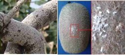 علایم: این آفت عموماً روي شاخهها و تنه درخت مستقر ميشود و بهندرت روي برگ و ميوه مشاهده ميشود. شپشک توت، با فرو بردن خرطوم در بافت گیاه از شیره آن نغذیه میکند و باعث ضعف گیاه، ریزش برگ و در نهایت خشکیدگی آن شده و در حالت طغیانی با استقرار روی میوه از بازار پسندی آن میکاهد.