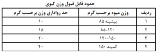 - میوه کیوی محتوی یک بسته باید بدون آفت زنده و مرده باشد.