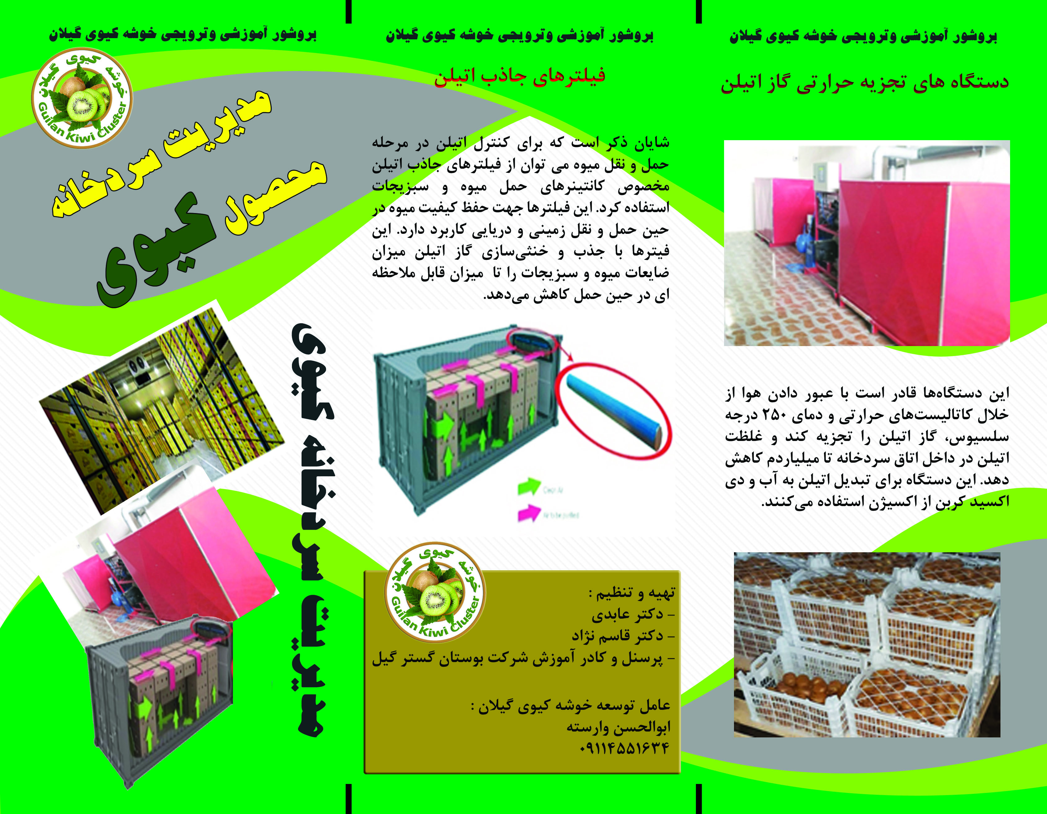 تاكيد ميشود با توجه به حساسيت ميوه كيوي نسبت به اتيلن بايد سعي كرد ميوه در مراحل بعد از برداشت و نگهداري در معرض اتيلن قرار نگيرد. اندازه گاز اتيلن در هواي سالن سردخانه 5-10 قسمت در بیلیون سفارش ميگردد. بايد از ليفت تراكهايي استفاده کرد كه با نيروي باتري كار ميكنند.