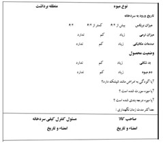براساس استاندارد شماره 6803 مورخه 1382 بهتر است که فرم پيشنهادي زیر در موقع تحويل میوه كيويفروت به سردخانه تکمیل شود: